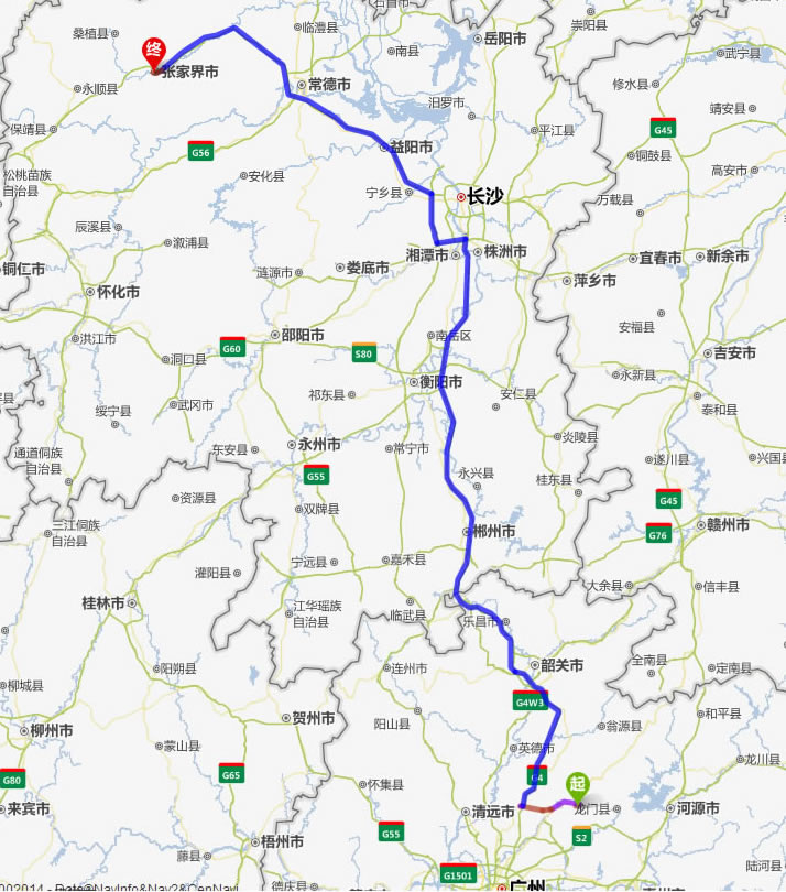 從化去張家界自駕車(chē)自助游線路圖全程高速):