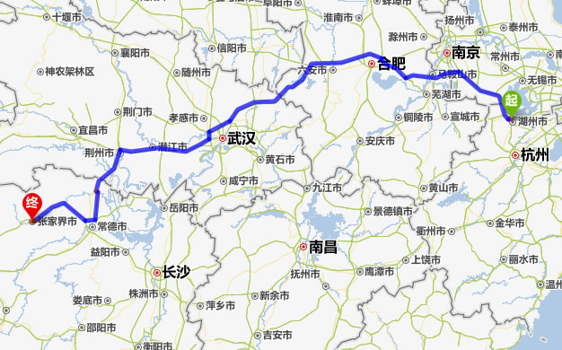 湖州去張家界自駕車自助游線路圖全程高速):