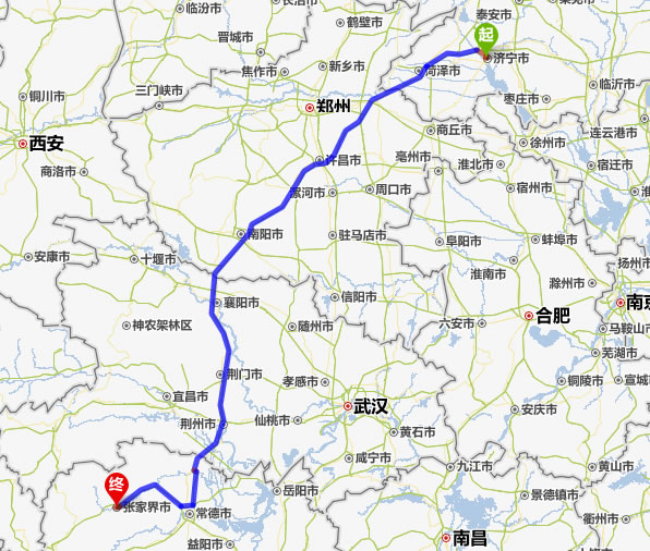 濟寧去張家界自駕車自助游線路圖全程高速):