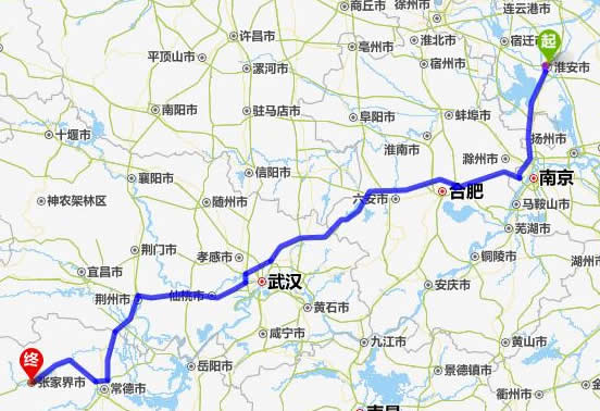 淮陰去張家界自駕車(chē)自助游線路圖全程高速):