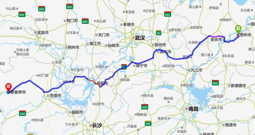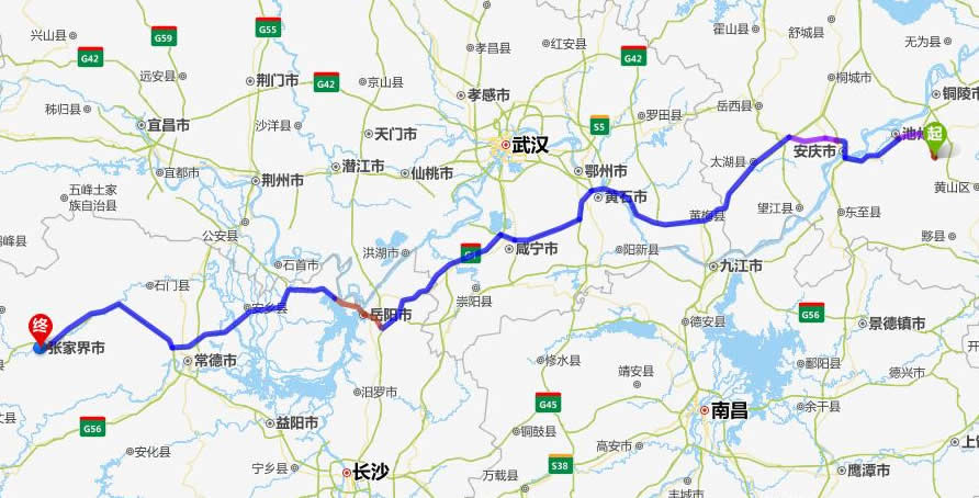 九華山去張家界自駕車(chē)自助游線(xiàn)路圖全程高速):